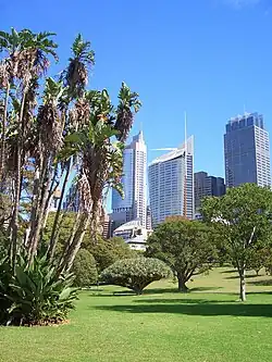 Head across the road and into the Royal Botanic Gardens (free), one of three botanic gardens in the Greater Sydney area. The gardens, used originally by the Cadigal people as an initiation ground, were set aside as the Governor's private reserve shortly after the arrival of the First Fleet in 1788, and at times were used for a zoo and for a massive exhibition palace, the Garden Palace (which burnt down in a large fire in the 1880s, but the gates still survive). Today, they are the home for thousands of different species of plant found in and area the Sydney area. The gardens contain a tropical glasshouse, a herbarium and other interesting areas. There's plenty to see or do here, or you can just walk through. Take the paths that lead down to Farm Cove on Sydney Harbour.