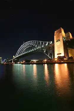 Return to the Argyle Cut, admiring the beautiful Garrison Church on the other side of the road as you head back. On the Rocks side of the Argyle Cut you will see an archway with the words "Argyle Steps" on it. Head up those stairs, cross the road (Cumberland Street) and you will see a sign pointing to "Bridge Steps". Head up those steps and there will be signs showing you how to get onto the roadway. The pedestrian walkway is on the eastern side, and unfortunately you are not able to traverse the western side unless you have a bicycle. Take the walk along the bridge roadway, admiring the eastern harbour, the Sydney Opera House, and the setting sun. If you get here before 5PM, you may be able to visit the Pylon Lookout ($11.00/$4.00 (under 4s free), 10AM-5PM) which is located in the south-east pylon of the Bridge and contains a lookout from the top of the bridge. While not the spectacular view you may get from the BridgeClimb, it's much cheaper and much less effort!