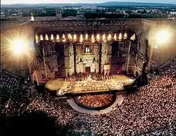 - 🌍 Chorégies d’Orange, Théatre Antique, ☏ +33 4 90 34 24 24, fax: +33 4 90 11 04 04. The Choregies Orange is an opera and classical music festival. It takes place every summer in July and August, the ancient theater of Orange. It is frequently broadcast on public television. Chaired by Thierry Mariani and directed since 1982 by Raymond Duffaut the Choregies Orange are one of the meccas of international opera. The program on the site chorégies their website. from €50 to €240.