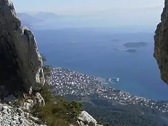 Orebić is a port town of 3,700 people (2021) in Dalmatia. Tourism is one of the town's main sources of income, especially during the summer months. The town's main beach is at Trstenica. The Franciscan monastery of Our Lady of Angels is a local attraction, along with the Mount of Saint Elijah (Croatian brdo Sv. Ilija) behind the town which offers a view of the island of Korčula and the Adriatic Sea. There are many sign-posted hiking paths from Orebić and nearby villages that lead to the summit.