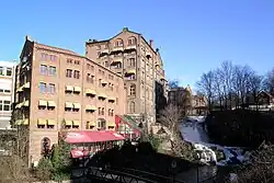 The rapid expansion in the late 1800s was particularly related to the heavy industry around Akerselva (river). The river and waterfalls provided water and power to the factories, ship building along fjord notably what is today Aker brygge was also important. Today most heavy industry has left the city. The characteristic red brick factory buildings are largely preserved for instance along Aker river and are interesting sights for instance in the Sagene (literally Saw mills) neighbourhood. Akerselva was in the middle ages called Frysja ("the cascading one") referring to the many small waterfalls. There are some 20 waterfalls.