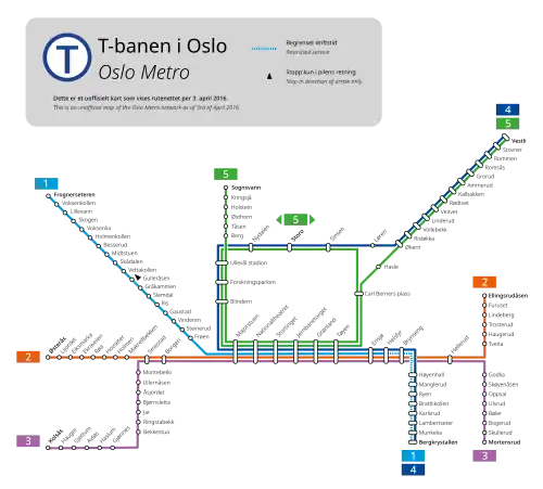 Long-distance trains heading south- or westwards also stop at Lysaker station at the western city border. Those heading north and east make their first call at Lillestrøm station, outside of the city.