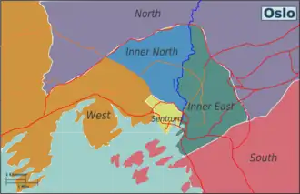 | Inner East The more bohemian part of Oslo is the place to go for alternative culture and international dining. East of the Akerselva river. |