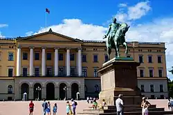 - 🌍 Royal Palace (Slottet) (T-Nationaltheateret, tram 13-19 to Slottsparken, at the end of Karl Johans gate, the city's main avenue). The Palace is the residence and offices of the king, Norway's head of state. Council of State meetings are held there every Friday. When new members of cabinet have been appointed by the king they appear in the front of the palace for photo sessions and interivews. Building of the Palace began in 1824 and completed in 1849. The Palace sits on a small mount at the end of Oslo main street, Karl Johans gate, named after the king at the time. It was built outside the city in neoclassical style. Tours inside the palace are arranged in summertime, starting in June 21. The tickets for the tour must be bought in advance from a post office. If there are vacant spots in a tour, they sell the remaining tickets at the Palace to people waiting in line who don't already have tickets. Don't count on getting tickets on the spot unless you are quite ahead in the line since a lot of people buy them at the post offices. There are about 2 tours in English on weekdays.