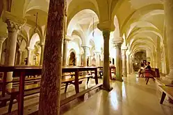 - 🌍 Cathedral (Duomo di Otranto), Piazza Basilica, ☏ +39 0836 801437. Jun - Sep: 07:00-12:00,15:00-19:00. An interesting church consecrated in 1088, and built on the remains of a Messapic village, a Roman domus and an early Christian temple. It represents an interesting mixture of Byzantine and Romanesque elements, and contains an enormous mosaic pavement, relics of the Martyrs, and a crypt resembling the Mezquita of Córdoba. Free.