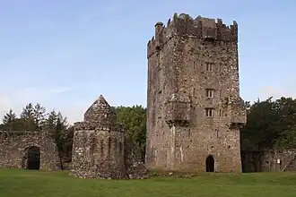 - π Ross Castle is a 17th-century mansion built over the earlier castle, and available for events and self-catering lets. In the late 19th century it was the home of Violet Florence Martin and Edith Somerville, who co-wrote the Stories of an Irish RM.