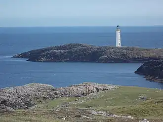 Out Skerries are the easternmost of the Shetland Islands. There are three main islands: Housay (west) and Bruray (east) are joined by road, and in 2001 had a population of 30, while Grunay is no longer inhabited. Many islets and rocks surround the main group. "Out" here means "east", to distinguish them from Ve ("west") Skerries off Papa Stour.