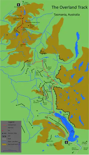 The Overland Track is a long-distance hiking trail in Cradle Mountain-Lake St Clair National Park. It is one of Tasmania's most scenic hiking trails, within Tasmania's most iconic national park. The trail is 65 km (40 mi), and takes about five to six days to complete.