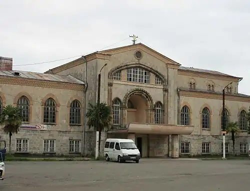 The city center is dominated by a 🌍 Dramatic Theater- the second largest theater building in Georgia, with statue of Alexander Tsutsunava, famous Georgian movie director, born in Ozurgeti. The city center extends along the Chavchavadze street north to the quite remarkable train station. All around are typical magnificent Soviet buildings of the 1930s to the 1960s, in the classical style, such as 🌍 Former movie theater - built in 1930s and renovated 1980s, but nonfunctional yet and 🌍 former hotel - constructivist building from the 1970s. Slightly away from the town center is an industrial complex of a 🌍 clay factory with glorious Soviet residential and administrative buildings and wall mosaics. Also worthy is a 🌍 mural at a sports school near the train station. Another Soviet industrial and administrative building can be found in 🌍 Anaseuli, an outskirt in south-western part of the town.