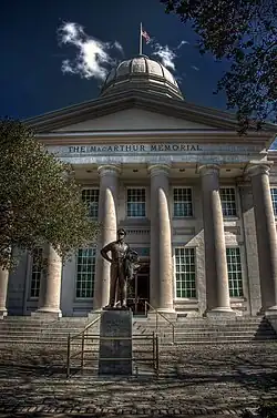 • 🌍 MacArthur Memorial, 198 Bank St; Norfolk, Virginia, +1-757-441-2965, fax: +1-757-441-5389. Tu-Sa 10AM-5PM; Su 11AM-5PM. Museum dedicated to the life of Douglas MacArthur, the general who led U.S. forces to victory over the Japanese in the Philippines, and was appointed Supreme Commander of the Allied Forces. His grave is located within the museum. MacArthur is one of the few non-presidents to have been granted a U.S. state funeral. Free. OSM directions target=_blank