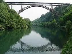🌍 The San Michele Bridge. The San Michele Bridge (locally known simply as the Paderno Bridge) is more than 100 years old, since it was built in 1889 to cross the Adda river. The iron bridge is 85mt high and 266mt long, and Its structure resembles closely the Eiffel Tower.