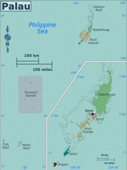 Palau (Belau) is a group of more than 300 tropical islands in the Micronesia area of the Pacific Ocean, to the southeast of the Philippines.