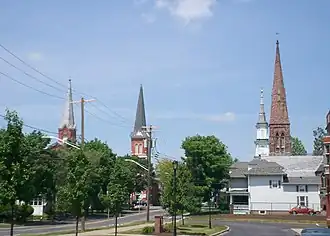 - Four corners, four steeples, Main St at Church St/Canandaigua St. Hey, when you're in a small town, sometimes the most trivial things can become tourist attractions. There's one church on each corner of this intersection, and the village claims that no place else in the country can boast the same. The 1832 Western Presbyterian Church, 1867 First United Methodist Church, 1870 Canal Town Community Church, and 1873 Zion Episcopal Church aren't connected in any other way, and there's no tour or admission fee that lets you explore them all. But the sight is a popular one for photographers, if nothing else.
