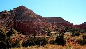 Palo Duro Canyon cuts through the High Plains of the Texas Panhandle, in the southern United States. It is a protected area, part of the Palo Duro Canyon State Park.