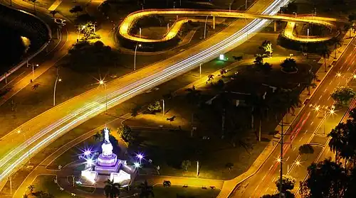 • 🌍 Cerro Ancón (from Estación Cinco de Mayo: walk up to the roundabout on Calle J and cross the Pan-American Highway, stay on the hill side of the road till the entrance to Mi Pueblito; from María Carter Pantalones Park: walk to the football stadium Maracaná de Panamá and head for the pedestrian overpass that crosses the highway; pparently there is another entrance on the west side of the hill as well). Cerro Ancón or Ancon Hill is the tallest peak in Panama City. There is a fairly well-trafficked paved road heading to the summit that is used by local hikers, ambitious cyclists and a few tourists. It's only about a 15-minute walk from the trail head near Mi Pueblito. The summit has viewpoints looking out at Casco Viejo, the new town and the canal. OSM directions target=_blank