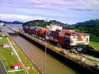 • Atlantic & Pacific Co. Restaurant (on top of Miraflores Visitor Center), +507 232-3120. The terrace section overlooks the Panama Canal and tables are most likely reserved in advance. Buffet is around $30 without drinks. It is open from 10:00 to 22:30 (much after the visitor center is closed), so if you need to see the canal late night (and can afford to spend extra for dinner), this is the place to be. (The Miraflores Lock opens both way in the night, so you are definitely going to see a couple of ships pass by).