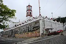- The Church of Nuestra Señora de la Asunción was constructed between 1570 and 1590 by the Franciscans. The bell tower was built in 1875, and the clock which is there was installed in 1895. The church is in the form of a Latin cross and has an entrance flanked by Roman style pilasters. On the atrium wall is a sculpted mural by Teodoro Cano Garcia which depicts the evolution of Totonac culture superimposed on the body of the god Quetzalcoatl.