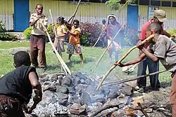 - Sagu tindis/amamaihi, a dish made from sago and grated coconut made by the Kamoro people in Timika.