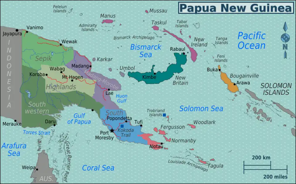 | Bougainville An autonomous island region, culturally and geographically more akin to the Solomon Islands, expected to become an independent country in 2027 |