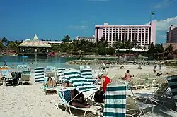 - 🌍 Atlantis Paradise Island Resort and Casino, ☏ +1 242 363-3000, toll-free: +1-800-ATLANTIS (28526847) (in the US). Check-in: 3pm, check-out: 11am. The largest, most tourist-oriented hotel in Nassau. Located on Paradise Island, just across the causeway from downtown Nassau. A tourist attraction in itself, with a giant aquarium, a casino, shopping center, marina, water park, not to mention the beach. $300 and up.