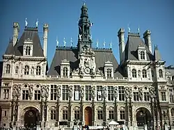 l'Hôtel de Ville - 🌍 Hôtel de Ville (Town Hall), Place de la Hôtel de Ville (Metro: Hôtel de Ville). Many feel that this, Paris' town hall, is one of the loveliest buildings in the city. You might not get that from the front view, but try watching the light change on its roofs and towers during sunset from one of the cafés on the Ile de St. Louis, the Lutece for instance. Alternatively, go to the top floor of the Bazar de l'Hôtel de Ville (BHV) department store opposite, on rue de Rivoli and walk up a flight of stairs to the roof terrace (terrasse), from which there is a dramatic view of both the roof of the Hôtel de Ville and the immediate surroundings and river. The present Hôtel de Ville replaced the 16th century original which was burned down during the Commune in 1871. A pastiche of its predecessor, but on a far larger scale, it was designed by the architects Ballu and Deperthes, chosen after a competition, and was mostly completed by 1882. The building is lavishly, and some would say heavy-handedly, decorated both inside and out, and finished in an arrestingly white stone, similar to that used for the even more eye-catching Sacre-Coeur basilica. The statue on the garden wall on the south side is of Etienne Marcel, the most famous holder of the post of "prevôt des marchands" (provost of merchants) which pre-dated the office of mayor. Marcel came to a sticky end, lynched in 1358 by an angry mob after trying to assert the city's powers a little too energetically. The Hôtel de Ville was for many years the private fiefdom of Jacques Chirac, France's president before Sarkozy, and was the site of a scandal centring on both illegal jobs given to Chirac's party members and an immense entertainment budget. General de Gaulle greeted the crowds from a front window in 1944 when Paris was liberated from the Germans and Robespierre was shot in the jaw and arrested in the original building in 1794. Admirers of Hôtel de Ville's architecture will want to know that Ballu also built the Church of La Trinité in the 9th arrondissement and the belfry of the town hall of the 1st arrondissement, opposite the Louvre's east façade. Ballu also restored the Tour St Jacques (see below), which was uncovered after restoration work lasting over a decade.