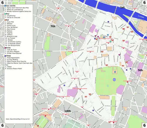 - Santa Lucia, 22, Rue Canettes, ☏ +33 1 43 26 42 68. Simple but very good Italian food.