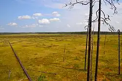 - The Pechora lowlands: pine forests, pine forested swamps, and moss swamps. There are few spruce forests in that area. This region includes the Gusinoe Bolota (Goose Swamp), a peat bog that occupies around 3 km2, with the peat deposits some 5–6 meters deep.