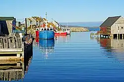 Peggy's Cove is a tiny fishing village (population 35) which attracts somewhere between half a million and a million tourists a year, all trying to snap a photo of its famous lighthouse. Some claim that a fisherman named this tiny spot for his wife, who was fond of this location; another possibility is that the village is named for its location on St. Margaret's Bay.