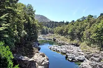 Pelorus Bridge is a locality centred on the bridge over the Pelorus River between Havelock and Rai Valley on SH 6, the main road between Blenheim and Nelson, in New Zealand. The native forest around the bridge is conserved as the Pelorus Bridge Scenic Reserve. The bridge has played an important part in the area's history, but today the focus (especially for visitors) is the area's scenery.