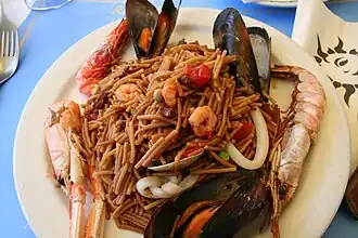 Classics of the local cuisine include suquet (fish stew with saffron and tomatoes), esesxaida (red salad with peppers), llagosta i pollastre (dish based on lobster and chicken), bullinada (fish and seafood pot), llagostada (lobster simmered in olive oil with sofregit - sauce), or cargollada (barbecued snails).