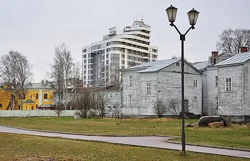 By 1717, Petrovskaya Sloboda had grown into the largest settlement in Karelia, with about 3,500 inhabitants, a timber fort, a covered market, and miniature palaces of the Tsar and Menshikov. The town's best-known landmark became the wooden church of Saints Peter and Paul, rebuilt in 1772 and renovated in 1789. The church retained its original iconostasis until it was destroyed by fire on October 30, 1924.