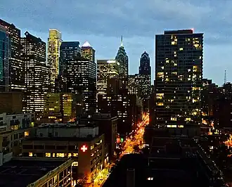 | Center City West West of Broad Street and City Hall, includes the art museum district, Rittenhouse Square, shopping resembling an outdoor mall with dining on Chestnut and Walnut Streets, and a good portion of the central business district with Philadelphia's tallest skyscrapers. |