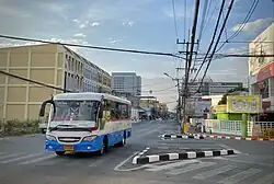 A local bus goes to the main beaches. It's not unusual for the tuk-tuk drivers at the bus terminal to tell arriving travellers that the local bus service has finished, even though it hasn't. The bus stop is near the market in the old town. From Bus Terminal 1, make a right onto Phang Nga Rd. Continue down Phang Nga until it terminates at Yaowarat Rd, then turn left. Within a few steps you will see a roundabout. Once at the roundabout, keep right. By keeping right, you will find Ranong Rd. Within 100–200 m you will find the local bus stop.