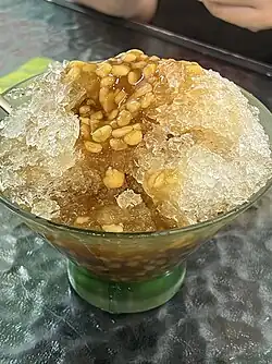 - Green bean garlic(綠豆蒜).This is called green bean garlic because the shape of the peeled mung bean resembles minced garlic. It's not really garlic. It is often used to make green bean garlic ice. The source is Hengchun County, Pingtung(屏東恆春鎮).