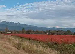 Pitt Meadows is a city of 18,500 people (2016) in the Fraser Valley of British Columbia, on the north bank of the Fraser River at the confluence with the Pitt River. It's part of the urban edge, where bedroom housing for suburban Vancouver is displacing the small agricultural town of Pitt Meadows past — but the farms hang on.