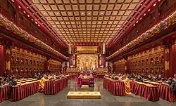 - 🌍 Buddha Tooth Relic Temple (佛牙寺), 288 South Bridge Rd (Chinatown). A relatively new temple dating only to 2007, built in a style reminiscent of the architecture of China's Tang Dynasty. It was built to enshrine a tooth said to have been found within a collapsed stupa in Myanmar, which is said to be of the Gautama Buddha, though this claim is controversial among experts. Regardless of the tooth's authenticity, the opulent interior of the temple is virtually guaranteed to leave visitors awestruck. Only monks are allowed into the relic chamber on the fourth floor, though there is a public viewing gallery that is open to visitors at certain times of the day. The temple also houses a vegetarian restaurant in the basement.