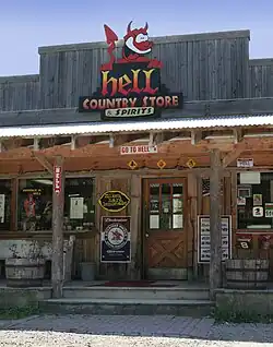 In some cases the place has indeed turned the name into a tourist attraction and therefore there are funny souvenirs you can buy, like the "Hell frozen over" postcards. Look out for bumper stickers, hats, T-shirts, mugs, postcards, or similar items at general stores, gas stations and souvenir shops.