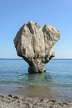 Plakias has a stunning, long, gently shelving largely sandy beach. The eastern end is backed by dunes and is largely naturist. A number of other beaches, including the nearby coves at Mikro Amoudi (or Amoudaki), are easily reached. Strong swimmers can pass between the two coves by swimming through the underwater arch, or round the pinnacle that divides them.