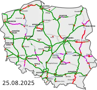 The land border can be crossed to Germany, Czechia, Slovakia, Ukraine, and Lithuania. Traffic to Belarus and the Kaliningrad Oblast is severely restricted as of 2025.