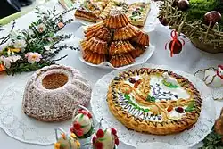 - Easter (Wielkanoc or Niedziela Wielkanocna) — scheduled according to the moon calendar, usually in March or April. Like Christmas, it is primarily a meaningful Christian holiday. On the Saturday before Easter, churches offer special services in anticipation of the holiday, including blessing of food; children bring baskets of painted eggs and candy to be blessed. On Easter Sunday, practicing Catholics go to the morning mass, followed by a celebratory breakfast made of foods blessed the day before. On Easter Sunday, shops, malls, and restaurants are commonly closed.