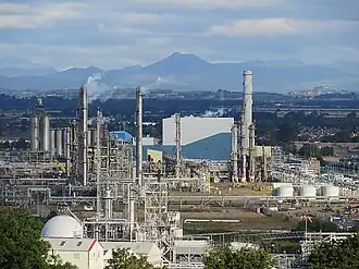 Grangemouth Refinery was created in 1924 to process Arabian crude oil, and the owners Scottish Oils eventually became part of British Petroleum, nowadays BP. In the 1950s a 58-mile pipeline was built to Finnart on the west coast near Garelochhead. Initially this brought in crude oil from a tanker terminal for refining here, and later a reverse pipe was built for refined exports. In the 1970s Britain developed oil and gas fields in the North Sea, and in 1975 a pipeline opened from Forties offshore oil field to Kinneil near Grangemouth. These assets are nowadays owned by Ineos, which in turn is 50% owned by China. The vast industrial complex dominates town, with its metal towers and flares and snaking pipes. It's in gradual decline as vehicles and other processes switch to electric power.