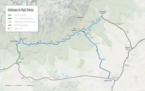 Direct trains serve Poprad from Prague, Žilina, Košice and Bratislava. Trains can be caught from Bratislava main train station (Bratislava Hlavna Stanica) approximately every 1 to 1½ hr. The approximate fare for this 5-hour trip is €12. Local electric trains (tram like) reach to the nearby mountain resorts of Vysoké Tatry - Smokovec, Tatranska Lomnica and Stbrske Pleso.