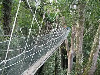 - 🌍 Poring Canopy Walk. Experience a bird's eye view of the surrounding rainforest from about 30 metres above the ground (entrance fee & camera fee, RM5 for a mobile phone camera). The walking path from the ticket booth to the beginning of the canopy walk is about 500m up hill and is moderately aerobic. It is a circular route.This pathway is not suitable for those who have mobility restrictions. If you are afraid of heights then do not attempt this Canopy Walk. The canopy walk is enjoyable, if you are tall you need to take extra care as the rope hand rails are very low. There are no guides or enforcement of how many people walk on the canopy at any one time, however no more than 6 persons should use the bridges at once. RM 5.