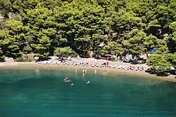 - 🌍 Monastery Beach. Located on a hill on the east coast. Under it is a quiet beach with crystal clear water, next to a pine forest. The area offers water sports and snorkeling. Also available in the area are sunbeds, umbrellas and a canteen where you can have a snack or drink.