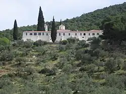 - 🌍 Holy Monastery of Zoodochos Pigi (4 km east of the main city of Poros). Founded in 1720 AD and built on the slope of a pine forest. In 1814, a group of monks from Mount Athos took refuge in this monastery. A few years later, these monks founded the Zoodochos Pigi Monastery at Longovarda on the island of Paros. It is a basilica with a dome and a tower-like belfry being the main church of the monastery. The temple is simple without many wall paintings. The precious wood-carved icon, which was made in Kappadokia of Asia Minor in the 17th century, together with the wood-carved iconostasis and the imposing bishop throne, are of great interest.