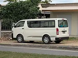 Buses in Port Vila are really shared taxis: Toyota Hiace-type minivans with red "B" license plates, they shuttle up and down the main roads of Port Vila. They are plentiful and can be hailed at designated bus stops or anywhere else there's a bit of space, and will deliver passengers to wherever they want to go as long as it's roughly in the right direction. The driver chooses the route, so you may not go there in a straight line, but you'll get there eventually.