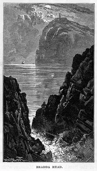 - π Milner's Tower is the focus of hikes onto Bradda Head, the clifftop north of the bay. It's in the shape of a lock and key, in memory of William Milner a Victorian safe-maker and philanthropist. The headland, which rises abruptly to 382 ft (116 m), was mined for copper from the Bronze Age to 1874.