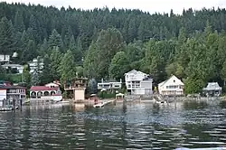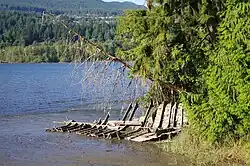 🌍 təmtəmíxʷtən / Belcarra Regional Park (northeast of the meeting of Burrard Inlet with Indian Arm, beginning near Belcarra Bay and extending to Sasamat Lake; the park is northwest of the Village of Anmore and to the southwest of Buntzen Lake), +1 604-520-6442. The park features several hiking trails and two beaches. Within the park, 🌍 White Pine Beach is a popular fresh water beach located on Sasamat Lake. The 🌍 Main Beach is salt water beach at the western end of the park the Indian Arm of the Burrard Inlet. From the Main Beach, the Admirality Point Trail, a trail with minimal elevation change, follows the shore to 🌍 Admirality Point, where it is possible to see along the Burrard Inlet, including Vancouver in the distance.