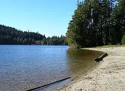 There are often map brochures in the park by the large map signs. The lake has a couple of 🌍 swimming beaches and is also popular for boating and fishing. You need a freshwater licence to fish; these are available from Anmore Store in the village. Only boats with small electric engines (check the specs before bringing a powered boat) are permitted on the lake otherwise you can canoe or kayak. Canoes can be rented from Anmore Store. Be aware of the large strip of logs signaling where you cannot swim/boat past on the north side of the lake.