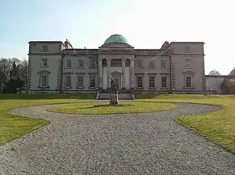 - 🌍 Emo Court, Emo R32 C44V, ☏ +353 57 862 6573. Grounds daily 8:30AM-4:30PM. Grand neo-classical mansion, designed by Gandon in 1790 but construction took another 70 years. Then at last the Earls of Portarlington could enjoy it and entertain in glittering style, but these were the final halcyon days of the Protestant ascendancy. Arms Quarterly 1st & 4th, Barry nebuly of six Argent and Gules, over all a Bend engrailed Azure... (and so on, at some length) somehow didn't enthrall an independent Republic of Ireland. The family left, and the house lay empty until 1930, then was a Jesuit college until 1969. Not wishing to sully their pious gaze with Grecian nymphs, the Jesuits chucked the statues in the lake. The estate was bought by Major Cholmeley Harrison, who restored the house, fished out the statues and opened the gardens to the public. House and gardens are now curated by the Office of Public Works, but the house is closed for restoration until summer 2024.